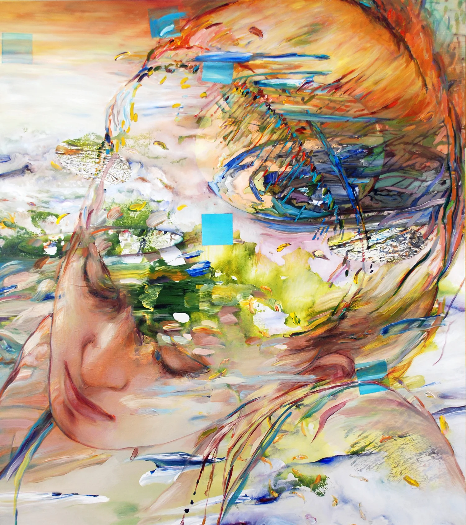 JULIA DREAMING THE UNIVERSE.  Acrylic on canvas, 60 x 52 inches, 2010 (available)