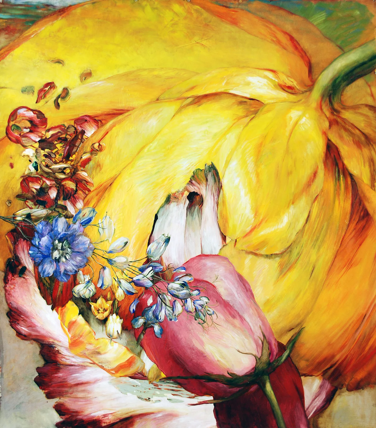 LARGE YELLOW TULIP.  Acrylic on canvas, 60 x 52 inches, 2010 (available)